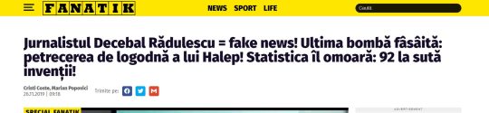 Pe 26 noiembrie 2019, siteul www.fanatik.ro posta un articol cu un titlu dur (vezi jos, facsimil) la adresa unui coleg de breaslă, Decebal Rădulescu (foto sus, în text). Sau Decebal Gh. Rădulescu, așa cum se semna, odată, într-un cotidian central, la rubrica de sport, pe vremea când colabora cu mine – el, ca jurnalist, iar eu, (și) în calitate de ofițer de presă al FC Petrolul. Ce îi reproșau, atunci, lui Decebal ziariștii de la “Fanatik”0, Cristi Coste și Marian Popovici? Nici mai mult, nici mai puțin că ar fi un “specialist” în fakenews, pe românește în “bombe” de presă răsuflate, fonfleuri – în limbajul nostru. Iar pentru a dovedi jusetețea celor scrise de către ei, Coste și Popovici au publicat și un procent al rateurilor lui Rădulescu: 92%!!!