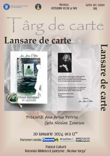 În cadrul Târgului de carte care are loc la Biblioteca Județeană “Nicolae Iorga”, de la Palatul Culturii Ploieşti, va avea loc o nouă lansare de carte. Evenimentul se va desfăşura sâmbătă, 20 ianuarie, la ora 12.00. Detalii, în afişul de mai jos: