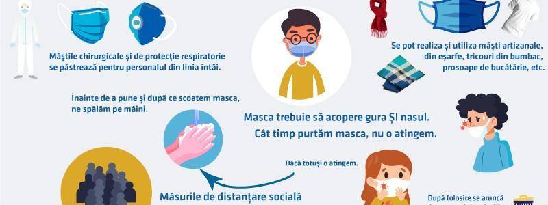 - Mod de utilizare: masca se poartă cu bărbia, gura şi nasul acoperite, cu părţile laterale ale măştii cât mai bine lipite de obraji.