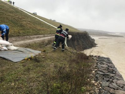 La fața locului ISU Prahova a mobilizat, astăzi, peste 40 de pompieri militari care au acționat pentru realizarea unui dig de protecție, cu ajutorul unor saci de nisip.