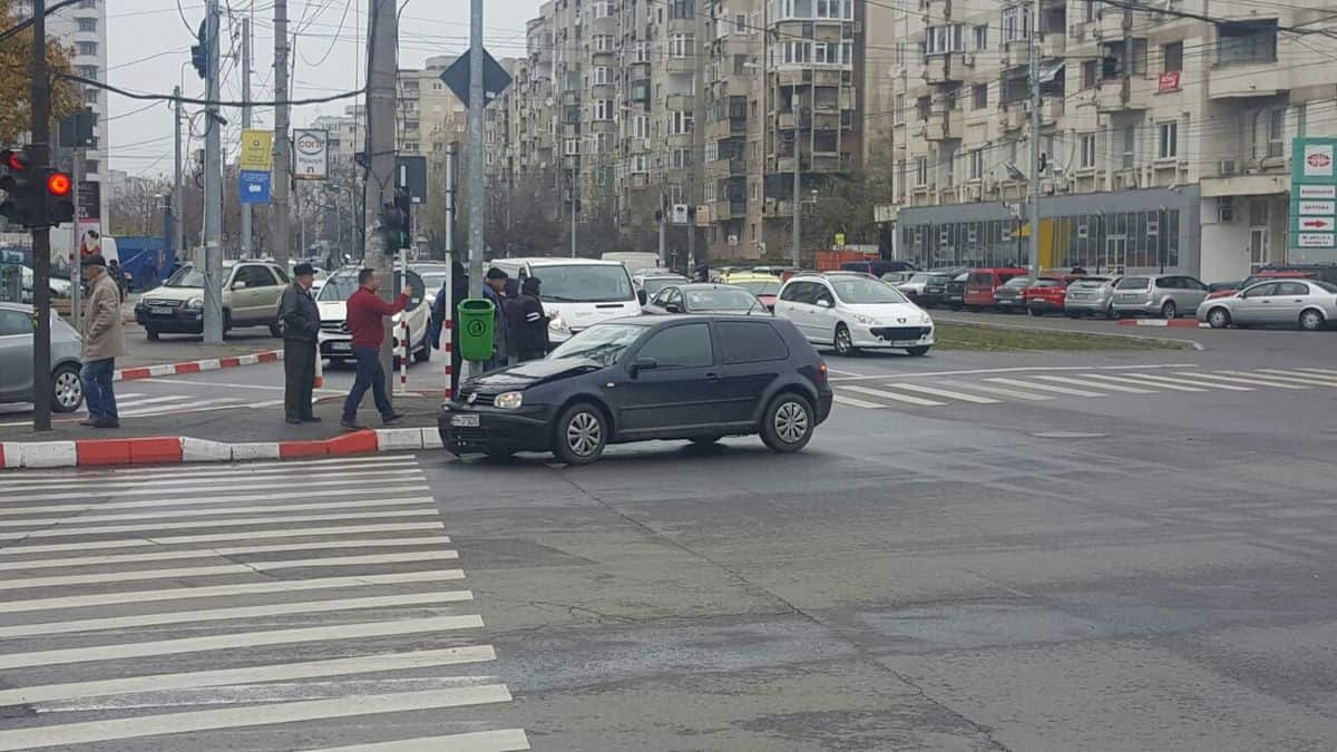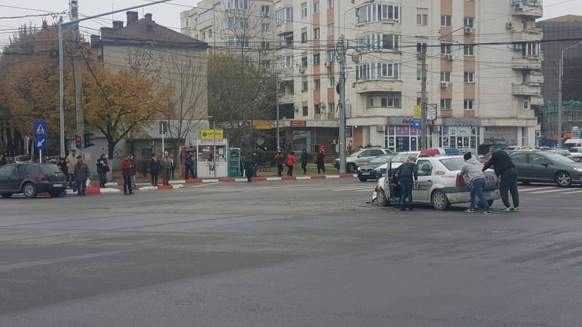Un autoturism a intrat în coliziune cu autoutilitara de poliţie. În urma tamponării, autospeciala de poliţie a trebuit să fie împinsă în afara intersecţiei pentru a nu afecta traficul în zonă.