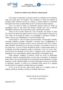 Mesaj la începutul anului școlar al inspectorului școlar general Ilona Rizea