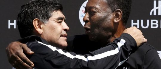 În Mexic, când trecusem cu puțin peste vârsta majoratului, ne trezeam nopțile târziu să vedem, tata și cu mine, meciurile de la Mondialul din Mexic. La Guadalajara, în “Grupa Leilor”, Brazilia, Anglia și Cehoslovacia păreau uriași pe lângă Naționala lui Angelo Niculescu. Și totuși, câștigând în fața cehilor și pierzând onorabil în fața inventatorilor fotbalului și a celor care urmau să devină pentru a treia oară campioni mondiali, într-un interval de numai 12 ani, România – cu mult regretatul petrolist Mihai Mocanu în primul ” 11″ – a oferit o replică apreciată. Iar Mocky al nostru a fost lăudat pentru modul în care i-a rezistat CELUI MAI MARE FOTBALIST al tuturor timpurilor: Edson Arantes do Nascimento, zis Pelé! S-a dus Yohan Cruyff, s-a dus Diego Maradona (foto jos, în stânga), acum s-a dus și CEL MAI MARE! Obrigado, Nosso Rei, e voe tranquilo para o Céu!