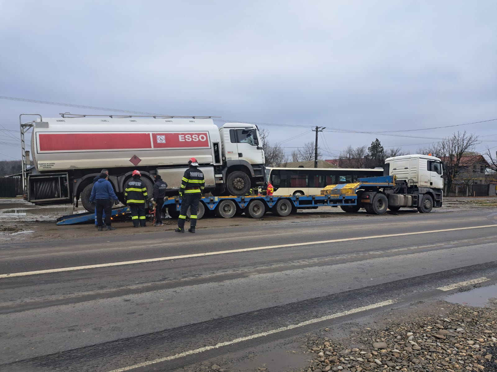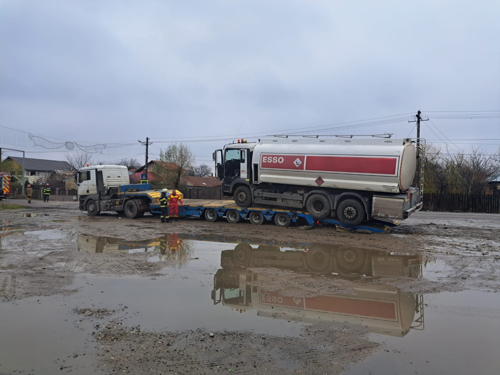 Pompierii militari din cadrul Detașamentului 1 de Pompieri Ploiești intervin în aceste momente pentru asigurarea măsurilor specifice de prevenire a incendiilor în cazul unei cisterne încărcate cu aproximativ 18 T de motorină care se află în pericol să cadă de pe un trailer. Nu sunt înregistrate scurgeri de combustibil. Se va încerca transvazarea carburantului pentru ca cisterna sa poată fi stabilizata.