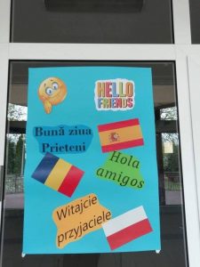 Luni, 13 mai, echipele s-au întâlnit la școala–gazdă Samorządowa Szkola Podstawowa in Kostkowo (Școala primară – administrația locală Kostkowo), o clădire interesantă, deoarece, pe lângă cele două etaje, la subsol se aflau clase amenajate pentru învățământul preșcolar și bucătăria în care serveau masa elevii și preșcolarii. În holul primitor de la parter am fost întâmpinați de Joanna, coordonatoarea proiectului, care ne-a prezentat programul și activitățile care vor fi derulate. A fost făcut turul școlii și am descoperit cu încântare însemnele naționale sau mesaje de întâmpinare în limba română și în limba spaniolă, afișate pe diverse uși ale claselor.
