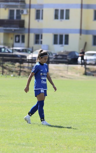 Fratele jucătoarei m-a atenționat, acum câțiva ani, că sora lui câștigase Cupa României, după o finală disputată la Sfântu Gheorghe, fiind vorba astfel despre prima ei mare performanță. Din nefericire, ulterior, dar nu chiar imediat, a suferit o rupere de ligamente la genunchiul stâng, fiind nevoie astfel să suporte o intervenție chirurgicală și să urmeze, pentru ea, și o perioadă mai lungă de recuperare. Curajoasă și, mai ales, ambițioasă, a trecut peste toată această perioadă dificilă și a revenit “mai puternică”, așa cum îmi mărturisea, în primul “11” al Heniului. Drept urmare, am văzut-o, duminică, pentru prima oară jucând. Deocamdată nu și “pe viu”, dar poate o voi face când va veni la București, pentru meciul cu “Fair Play”. Contra Aradului, fotbalista care poartă pe tricou numărul idolului său, portughezul Filipe Teixeira, 80, a evoluat timp de 60 de minute, fiind înlocuită pentru a nu se risca o eventuală accidentare, câteva momente din repriza întâi dând emoții că nu ar mai putea continua, după un atac mai tare al unei adversare. Că așa-i și la fotbalul feminin, se joacă dur, nu glumă!