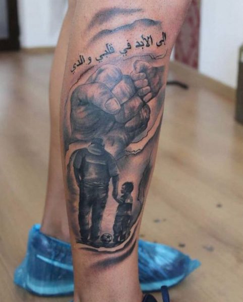 Încântat de calitățile puștiului ploieștean, Nicolescu și părintele acestuia l-au luat de mână și i l-au prezentat lui Marius Manolache, în 2012, la Centrul de Copii și Juniori al SC FC Petrolul. Și-așa a început dragostea dintre… Ștefan Fabian Niță (foto sus și foto jos, în echipament galben) și clubul găzarilor. Păcat că “filmul” nu a mai putut fi urmărit mai mult de un an și de Cristian Niță – tatăl lui Fabian și cel care îi insuflase atracția față de fotbal -, trecut în neființă prematur. Dar amintirea acestuia i-a rămas vie fiului, fiind “încrustată” pe gamba dreaptă a acestuia, împreună cu textul emoționant, înscris cu litere arabe: “Pentru totdeauna în inima mea!” (foto mijloc sus). Este, după cum se observă, un “instantaneu” cu o “ștafetă” imaginară “tată-fiu”, întâlnit și la Mihai Velisar (vezi www.gazetaph.ro). Velisar, un alt produs al defunctului centru, detașat la ex-SCM Gloria Buzău și, apoi, la Gaz Metan Mediaș, nemaiîntorcându-se deocamdată, acasă, în județ, deși poartă în Ardeal – ca și Niță jr. pe antebrațul drept, în Ploiești și Prahova – și tatuajul reprezentând imaginea simbolistică a Petrolului (foto mijloc jos).