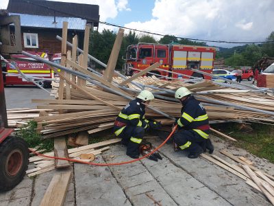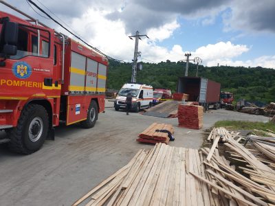 O stivă de scânduri s-a prăbușit peste 4 oameni, la un gater din Măneciu (imagini)