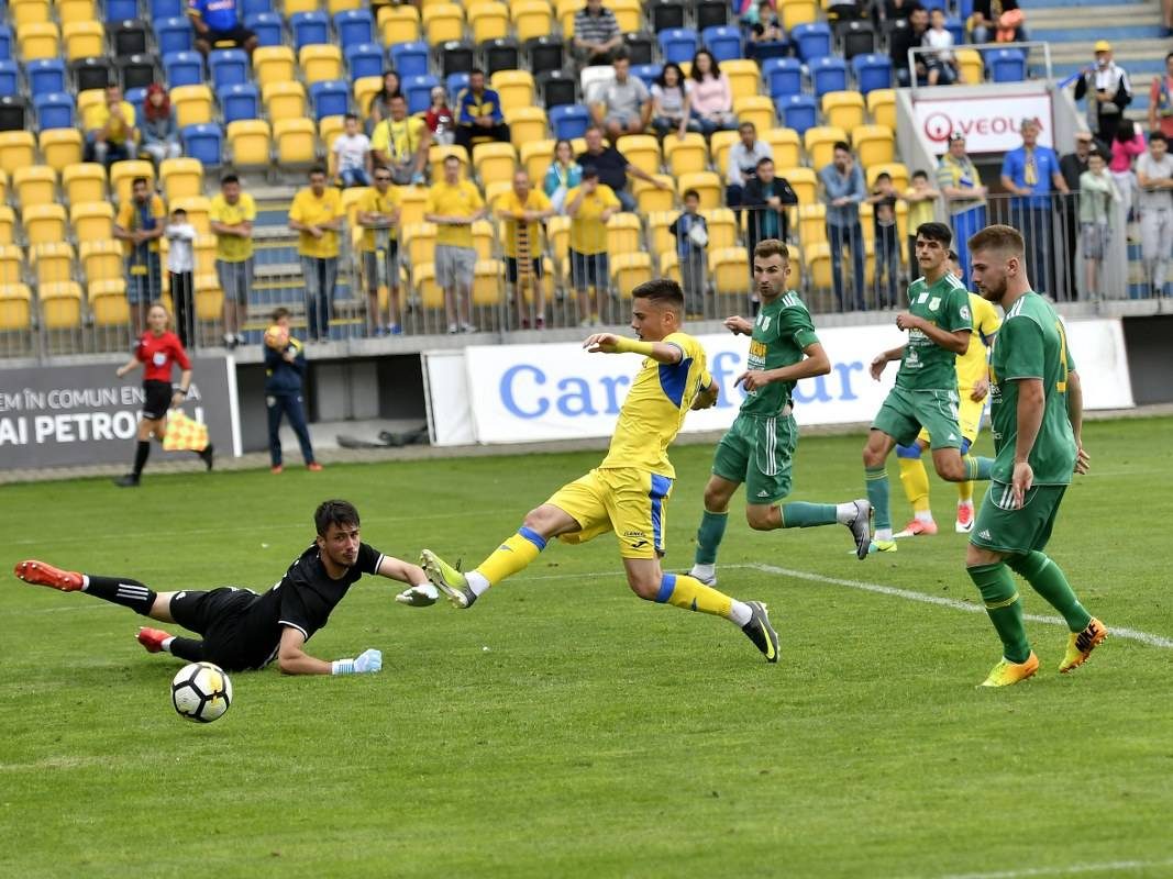 “Lupii” au fost conduși pe tabelă vreme de aproape 20 de minute, după reușita senzațională din lovitură liberă de la distanță a lui Ovidiu Comănescu (21), anulată de reluarea norocoasă a lui Marius Chindriș (40), din careul mic, iar răstunarea scorului de pe tabele s-a făcut abia cu 18 minute înainte de scurgerea timpului regulamentar, rezultatul final, 3-1 (1-1), fiind stabilit în ultimele 10 minute ale întâlnirii. Toate reușitele învingătorilor au avut însă parte și de… ajutorul Fortunei! La prima, după cornerul de pe stânga al lui Nini Popescu, căpitanul din prima repriză – la reluare i-a cedat banderola lui Claudiu Tudor – a primit balonul după o deviere fericită, iar șutul său, după preluare, a mers printre picioarele unui adversar aflat pe linia porții, lângă colțul din dreapta. Cu acel prilej, Chindriș a adus nu numai egalarea, ci a bifat și primul său gol în echipamentul galben-albastru, el fiind transferat în vara trecută de la UTA Bătrâna Doamnă Arad. La a doua, intrat pe teren în repriza secundă, din postură de rezervă, Alin Turcin a luftat incredibil la 16 metri, balonul s-a dus între Nini Popescu și Cosmin Lambru, primul a fost mai iute, l-a preluat și l-a trimis, apoi, peste portarul Valentin Sima, în plasă, de la 8-9 metri. În sfârșit, Sima a greșit o degajare, mingea a ajuns la Mihai Velisar, mijlocașul de bandă stângă șutând tare din afara suprafeței de pedeapsă, un fundaș advers s-a interpus, iar goal-keeper-ul “satelitului” divizionarei secunde CS Mioveni a fost derutat de traiectorie și a primit un gol mai de evitat. Până la urmă, nu contează însă cum Petrolul a răsturnat rezultatul, ci că a obținut victoria și cu două puncte mai mult decât îi era necesar pentru a obține promovarea matematică, înainte de finalul sezonului.