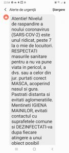 Astăzi, ploieștenii au primit un mesaj RoAlert care îi avertizează că nivelul de răspândire a noului coronavirus în municipiu este unul ridicat, de peste 7 cazuri la o mie de locuitori, fiind îndemnați să respecte măsurile sanitare de protecție.