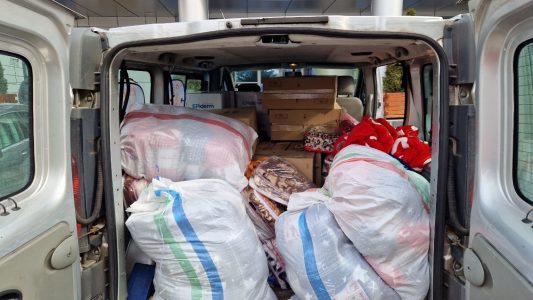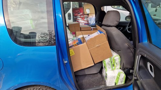 * Cutii cu alimente (produse alimentare neperisabile, conserve), mâncare pentru bebeluși, scutece, produse de igienă și curățenie, produse de igienă pentru femei.