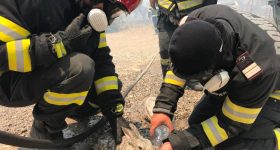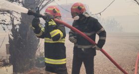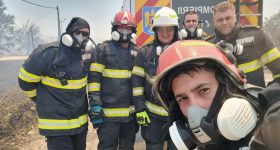 Colegii noștri acționează în condiții extreme, pentru limitarea propagării incendiului spre zonele locuite și menținerea unei linii de protecție între frontul incendiului și zona neafectată.
