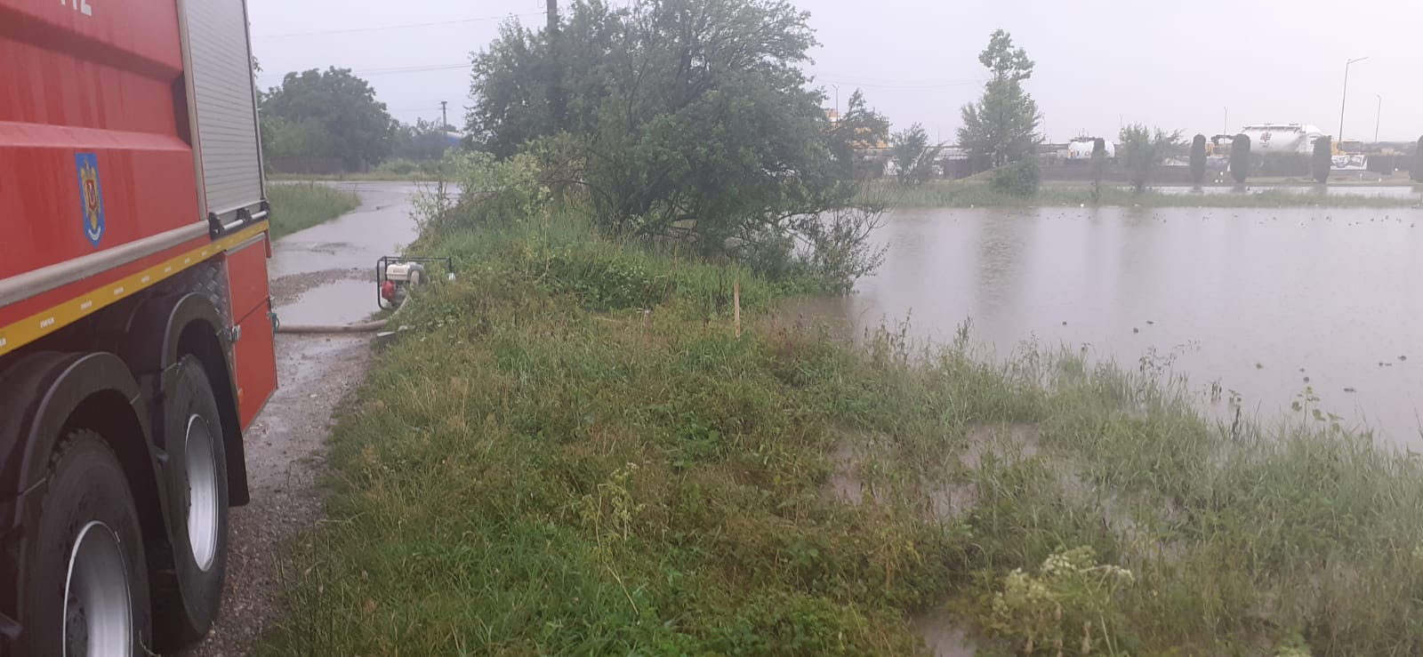 Pompierii acționează să degajeze DN 72 inundat