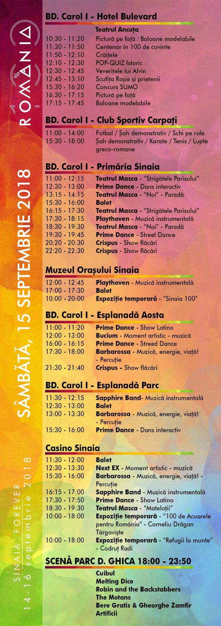 Programul festivalului “Sinaia Forever” 14-16 septembrie 2018
