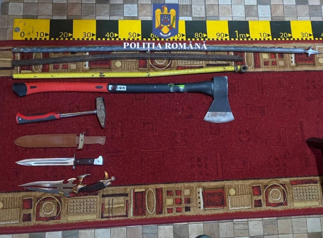 Razie de amploare în Ploieşti. Pistoale, cuțite, macete, săbii, topoare, ridicate de poliţişti – Galerie foto