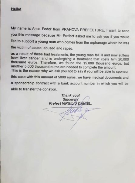 Aceste tentative de fraudă implică solicitări scrise sau telefonice în care se cer bani pentru diverse asociații sau activități, în numele meu. Aș dori să atrag atenția tuturor celor care primesc astfel de mesaje sau apeluri să nu dea curs acestor solicitări și sub nicio formă să nu mă asocieze cu astfel de acțiuni.