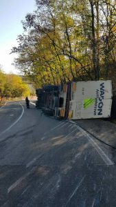 Astăzi dimineaţă, în jurul orei 10.00, pe DN1A, la ieșirea din staţiunea Cheia către Ploiești, un TIR s-a răsturnat într-o curbă. Vehicolul transporta ambalaje. Traficul rutier în zonă a fost afectat: se circulă pe o bandă, dirijat, alternativ.