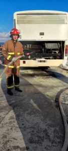 Plutonier adjunct Daniel Câmpeanu, din cadrul Detașamentului de Pompieri Vălenii de Munte, a intervenit la incendiul apărut la un autobuz aflat în trafic, având 50 de călători la bord. Pompierul era în timpul liber și fericita întâmplare a făcut să se afle, în jurul orei 15.30, la ieșirea din Măgurele spre Bălțești, locul unde autobuzul a fost cuprins de flăcări la compartimentul motor.