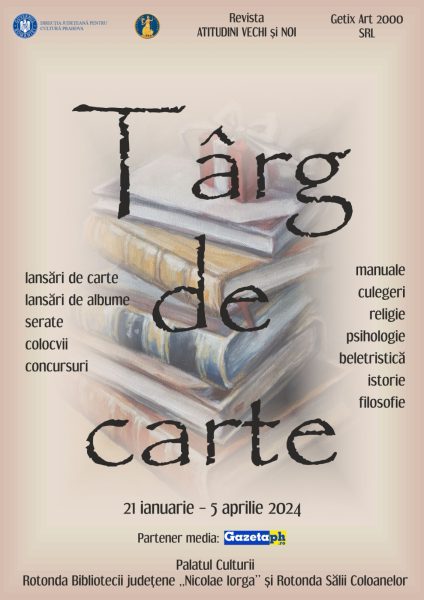 Veşti bune pentru iubitorii de carte şi, în general, de cultură: Târgul de Carte care are loc la Palatul Culturii din Ploieşti se prelungeşte. Dat fiind succesul de care s-a bucurat până acum, s-a luat decizia ca acesta să se prelungească până la data de 5 aprilie 2024. Iată afişul evenimentului: