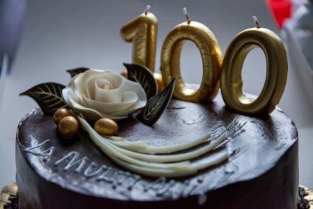 Oaspeţii i-au oferit veteranului o plachetă, flori, tradiţionalul tort şi alte cadouri la aniversarea centenară.