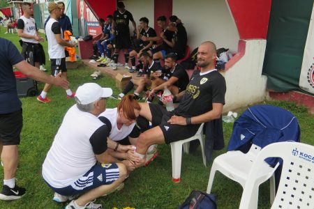 La reluare, aproape cu o altă alcătuire, dar păstrând același modul, 1-3-4-3, care ar putea fi folosit și în Liga 1, băieții lui Nicolae Constantin au stăpânit mai mult mingea, iar rezultatul a fost răsturnarea scorului. Asta la puțin peste un ceas de la fluierul de început al unui arbitru local foarte bun. Era minutul 67, și Mihai Velisar (foto, în săritură acrobatică), cel care a urcat des în banda stânga tot mitanul secund, un spațiu folosit cu destul succes și de Răzvan Tucaliuc (foto jos), a trimis o minge pe jos în fața lui “6 metri”. Un balon pe care, abil atunci, vârful de conjunctură Simon Măzărache (foto sus) – continui să cred așa ceva – a deviat-o în plasă, de lângă un longilin apărător advers. Și 2-1 a rămas rezultatul până la final, deși autorul golului primei victorii din cantonament a fost înlocuit, înainte cu 23 de minute de terminarea jocului, de către un atacant veritabil sosit din Liga 1, Mirko Ivanovski, ex-Dinamo București. Nord macedoneanul a ieșit în evidență însă mai mult prin pasele inteligente către diverși coechipieri ai săi. Iată și efectivul aliniat de ploieșteni: Avram (46 – Moroz) – Meijers, Tamaș (46 – Olaru; cpt), Huja (46 – Horj) – Borța (46 – Pașov), Cebotaru (46 – Seto), Jair (46 – Dumitriu), Țicu (cpt; 46 – Velisar) – Bratu (46 – Cioiu), Măzărache (70 – Ivanovski), Gheorghe (46 – Tucaliuc).