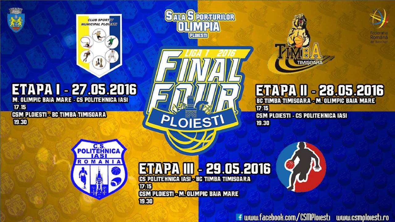 În cazul în care nu se vor suferi schimbări de ore, vineri, de la 17.15 vor combate Olimpic cu Politehnica, iar de la 19.30 – CSM cu Timba, sâmbătă, Timba versus Olimpic, respectiv CSM contra Politehnica, iar duminică, Politehnica se va confrunta cu Timba și CSM cu Olimpic. În calitate de gazdă a Final 4, CSM Ploiești și-a câștigat dreptul de a susține toate meciurile în vedetă, de la ora 19.30. De subliniat că vor promova, din Divizia A, în Liga Națională primele două clasate ale ierarhiei finale a acestui turneu. Organizatorii așteaptă, în cele trei zile de întreceri, asistențe numeroase în sala de sport din Parcul Tineretului, din Ploiești, iubitorii de baschet locali putând contribui astfel, prin suportul lor moral, la accederea unei alte echipe de baschet masculin din orașul lor în eșalonul de elită al sportului jucat la panou. Intrarea în sală va fi liberă.
